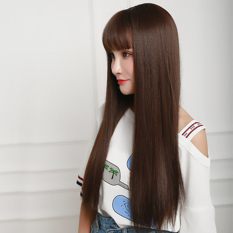 Wig women's long straight hair invisible seamless full headgear long hair waist-length realistic inner buckle temperament repair face promotion