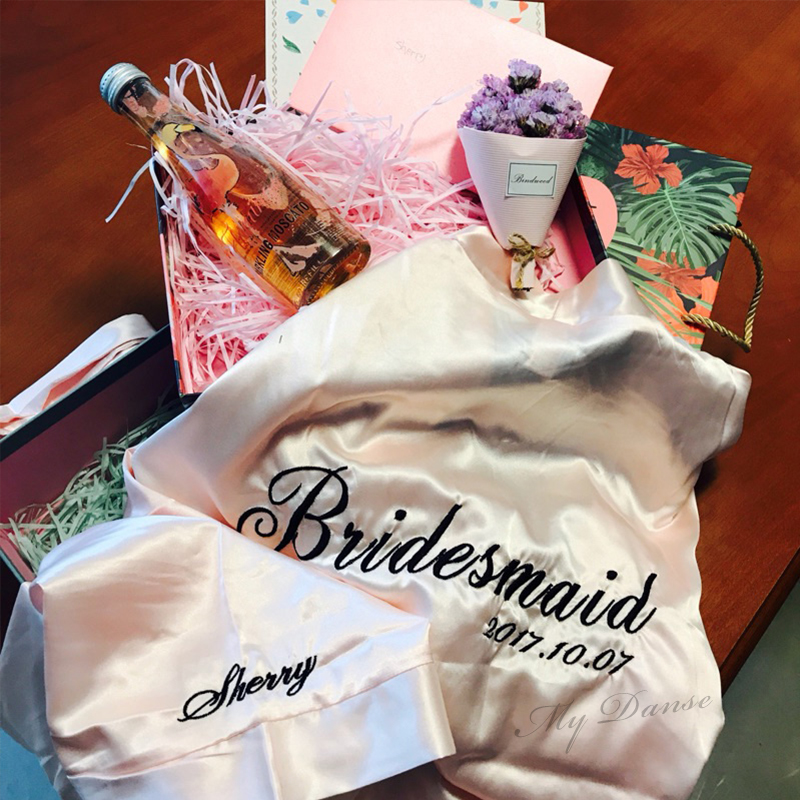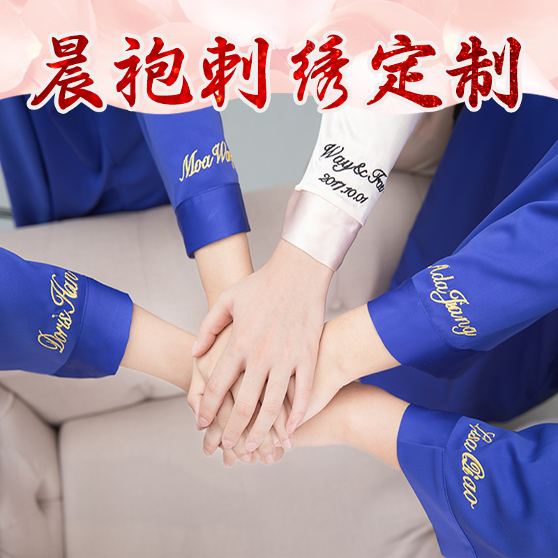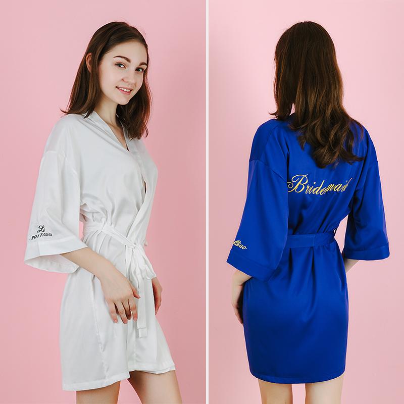 Silk Quality Party Sleeping Robe Embroidered Bride Wedding Bathrobe Makeup Morning Robe Diy Bridal Wedding Pyjamas Custom Logo