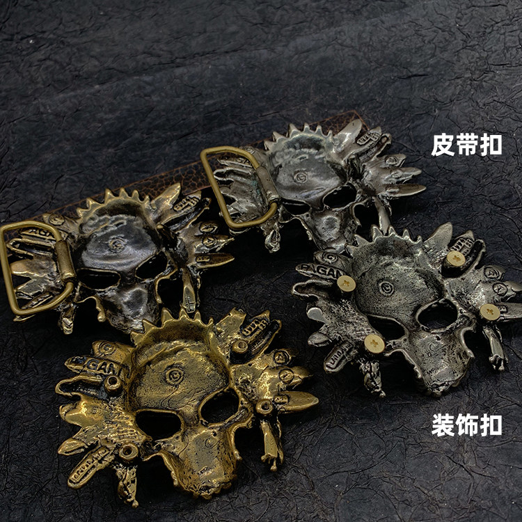 Brass Chief Skull leather strap Buckle White Brass chief Skull Leather Belt Buckle Brass Chief skeleton Decorative Buckle White Copper chief Skull Decorative Buckle