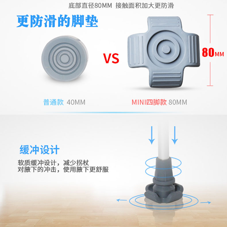 Telescopic four feet with peace of mind and reassurance to the movement of the stick