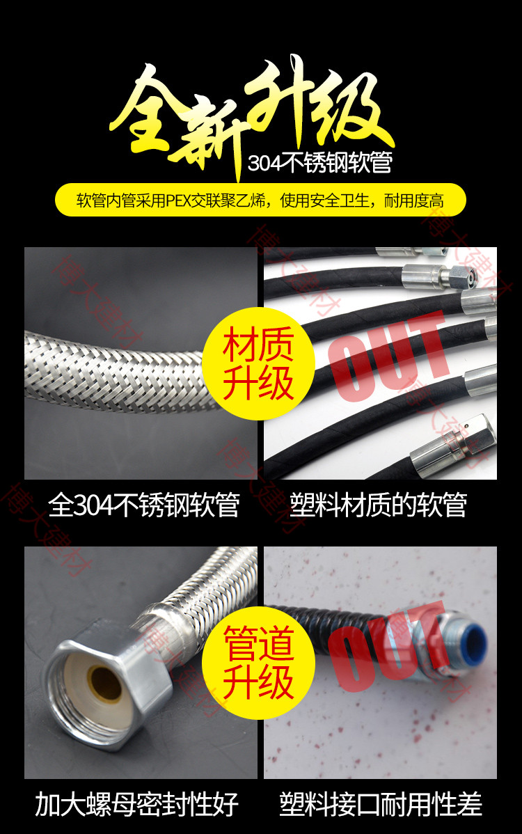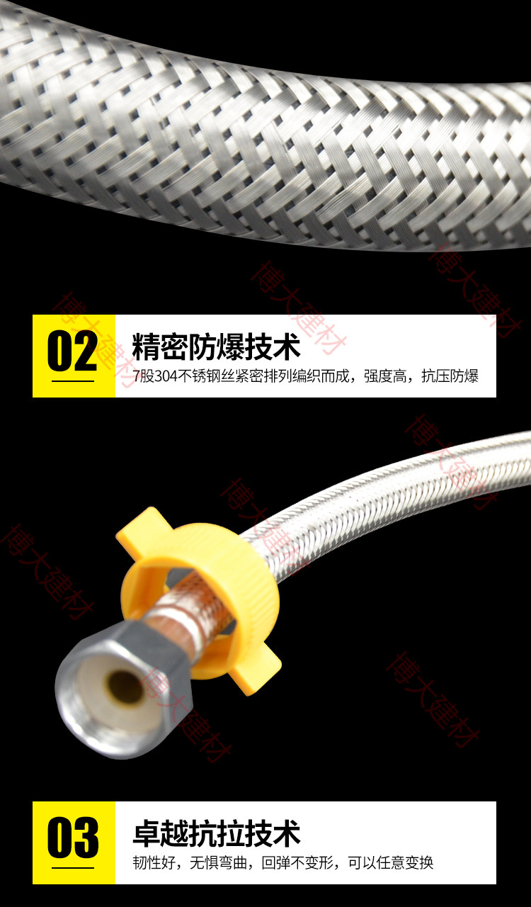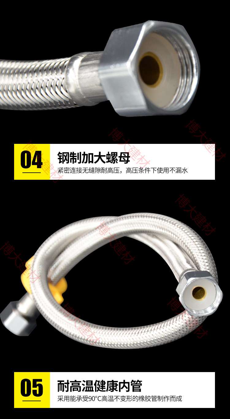 304 stainless steel metal hose braided hot and cold water inflow toilet water heater high-pressure explosion protection 2nd head 4 sub nuts