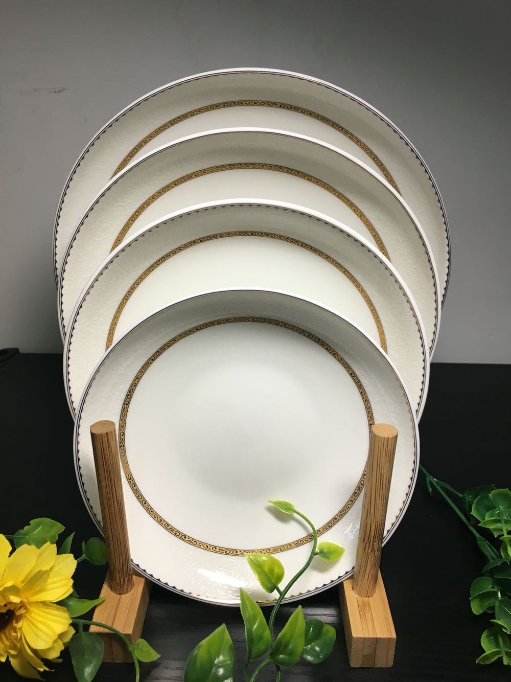 Tangshan Longchang bone china tableware loose parts white relief bone china plate Longchang first-class bone china hot dish