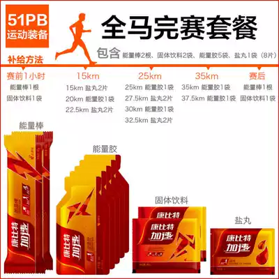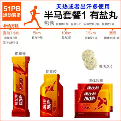 Solid beverages 12 energy bars, 10 energy glues, 10 flavors, random salt pills, 10 exams below 5km (1 stick, 1 glue, 1 solid drink) half horse set meal (1 glue 2 Salt 2 solid drink 1 stick
