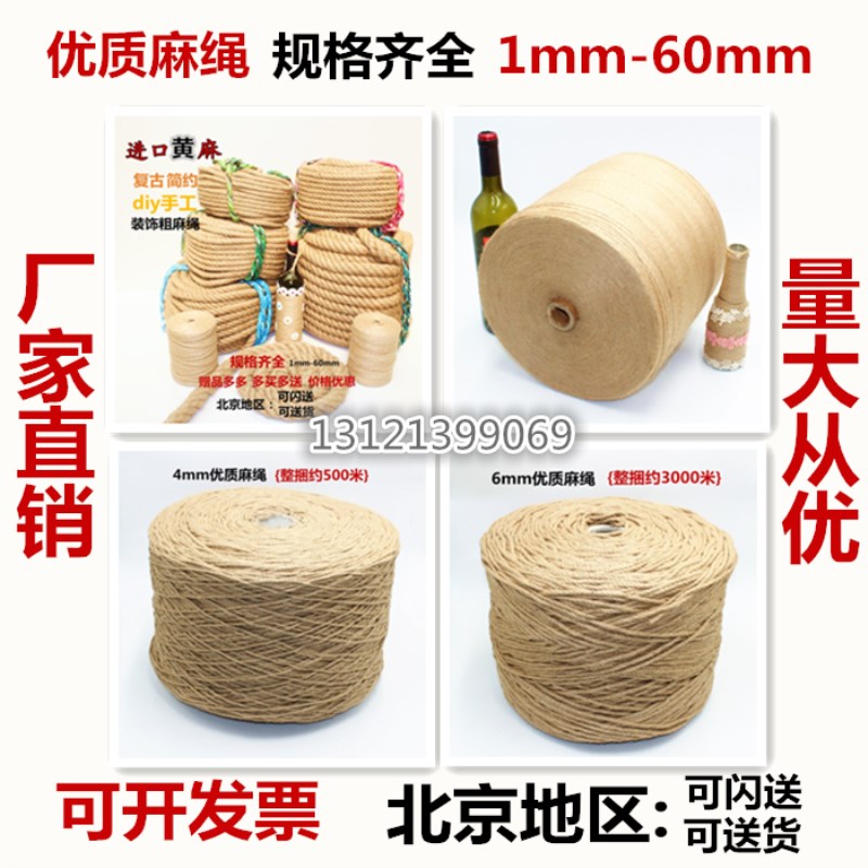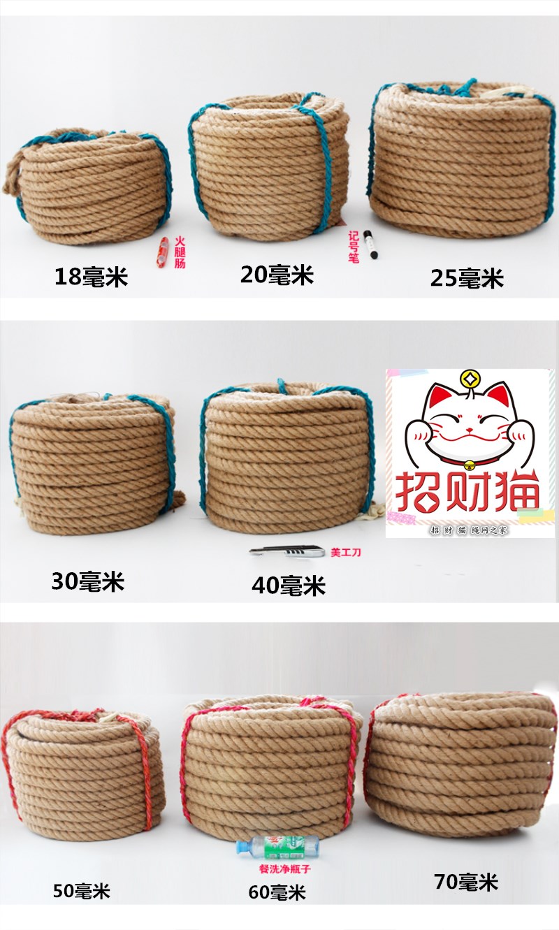 High quality coarse hemp rope fine hemp rope wear-resistant binding rope decorative hemp rope hand woven hemp rope photo wall tug of war rope