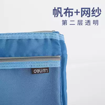 Del color file bag double storage bag file bag grid storage A4 A5 student zipper bag large capacity test paper storage bag student office file file file folder 5843