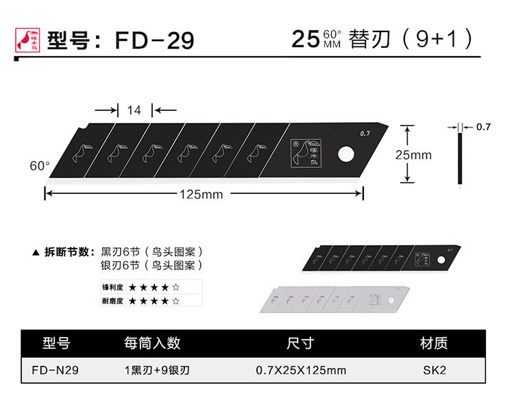 Woodpecker blade FD-29 large size widening 25mm Heavy beauty tool sheet 0 7mm thick wallpaper wallpaper knife