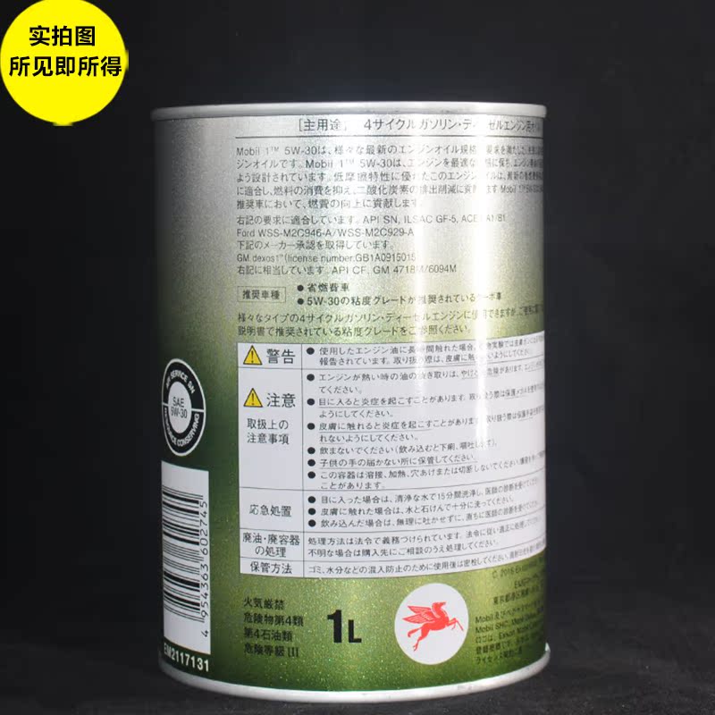 Japan original imported mobil No. 1 5W-30 fully synthetic motor oil iron tank 1L installed Mobil 1 SN Class