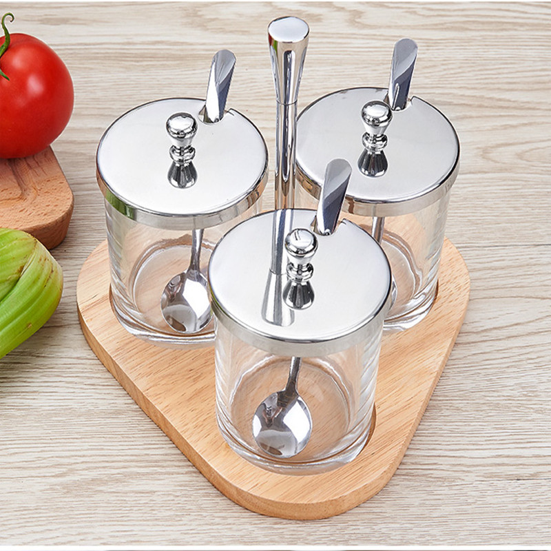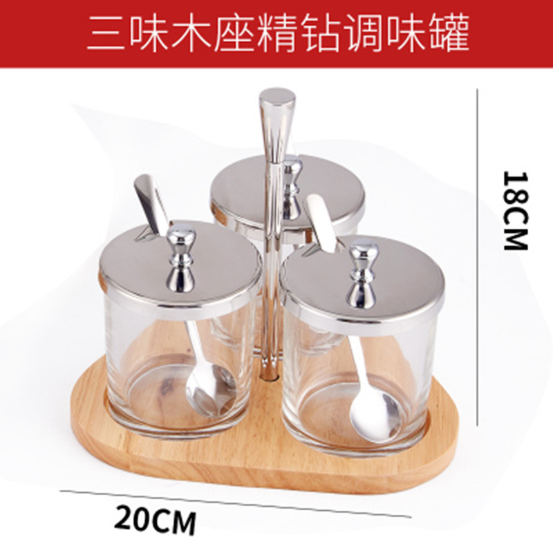 304 stainless steel set seasoning tank Seasoning tank European glass seasoning bottle seasoning box Seasoning tank Kitchen salt tank