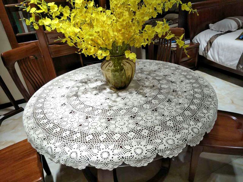 I love my home pure manual hook flower fields Garden Wind round cotton thread Lace Hollowed-out Home Catering Boutique Tablecloth Tablecloth Tablecloth Tablecloth Table Cloth