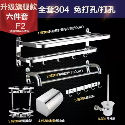 Towel rack Stainless steel 304 bath towel rack Powder room bathroom pendant shelf 2-layer bathroom without punching double layer