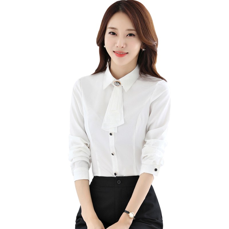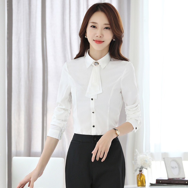 2019 spring, autumn and winter Korean version waist-length long-sleeved white blue shirt slim fit and thin temperament professional formal women's top