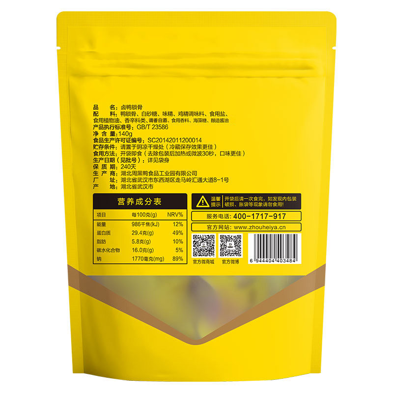 Manjian (Zhouhei duck flagship store) vacuum Red-Stewed Duck collarbone 140g * 3 bags of Wuhan specialty snacks