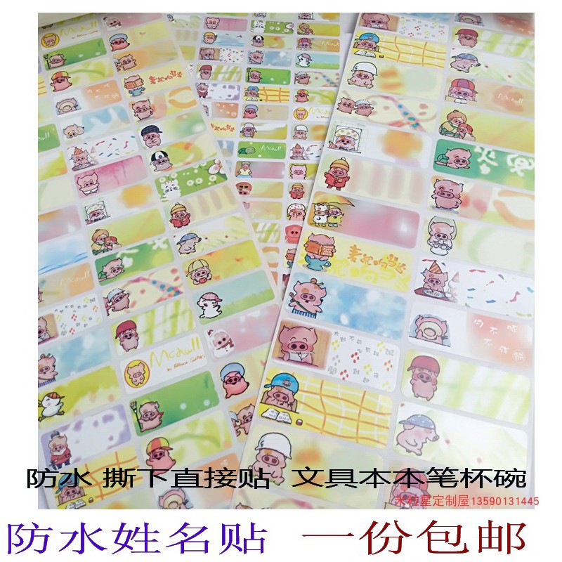 Primary school students start school cartoon waterproof name sticker red pig McDull label DIY personalized custom name class sticker