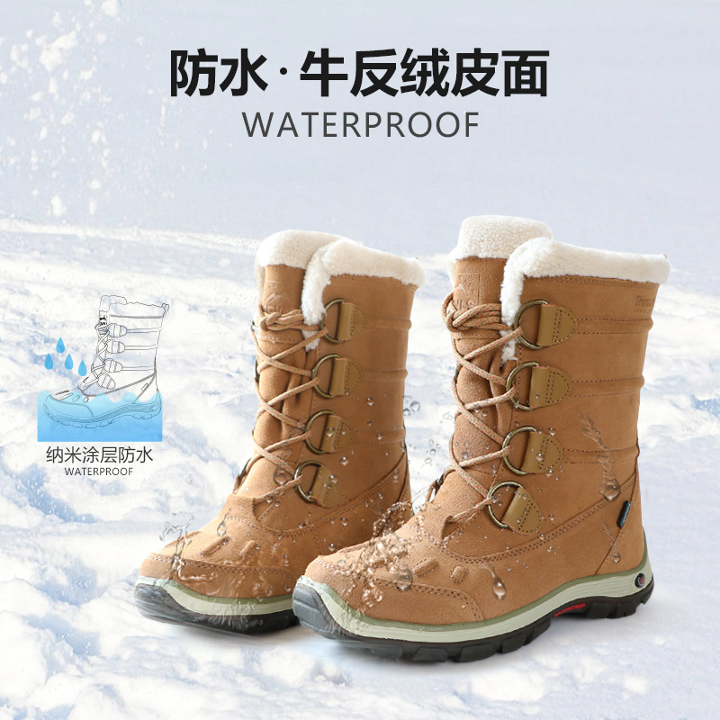 Winter cowhide surface waterproof warm outdoor snow boots women's mountaineering Xinxue Li cold Northeast cotton shoes thickened cold resistance