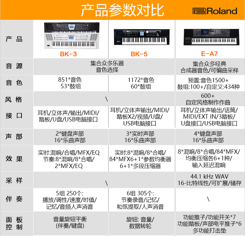 Roland Roland Synthesizer Keyboard BK3 5 E-A7 Automatic Accompaniment Intelligent 61 Key Bricette Keyboard Electronic Organ