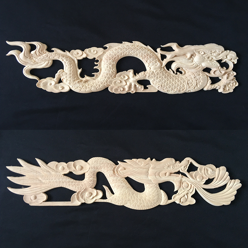 Solid wood carving dragon and phoenix colorful double dragon play pearl door God open evil town house carving wood Dongyang wood carving decoration two dragons