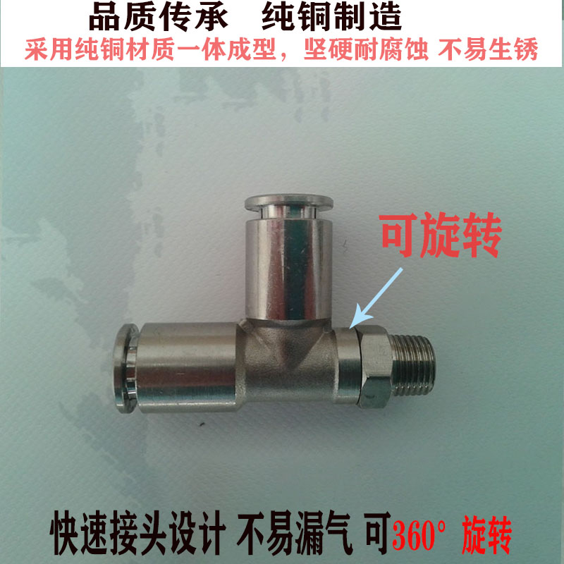 Three-way threaded T-type rotating pneumatic gas pipe connector