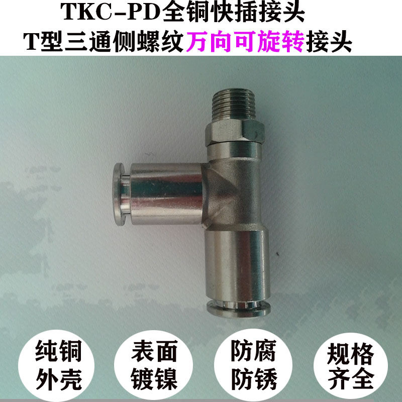 Full copper fast plug TKC-PD4 6 8 10 12 -M5 01 02 03 04 three-way threaded trachea connector