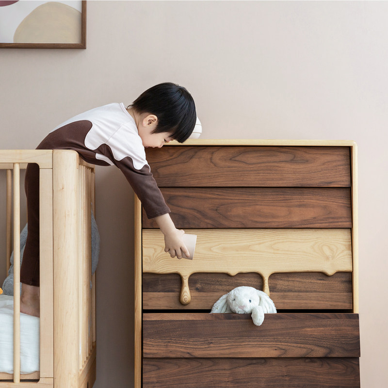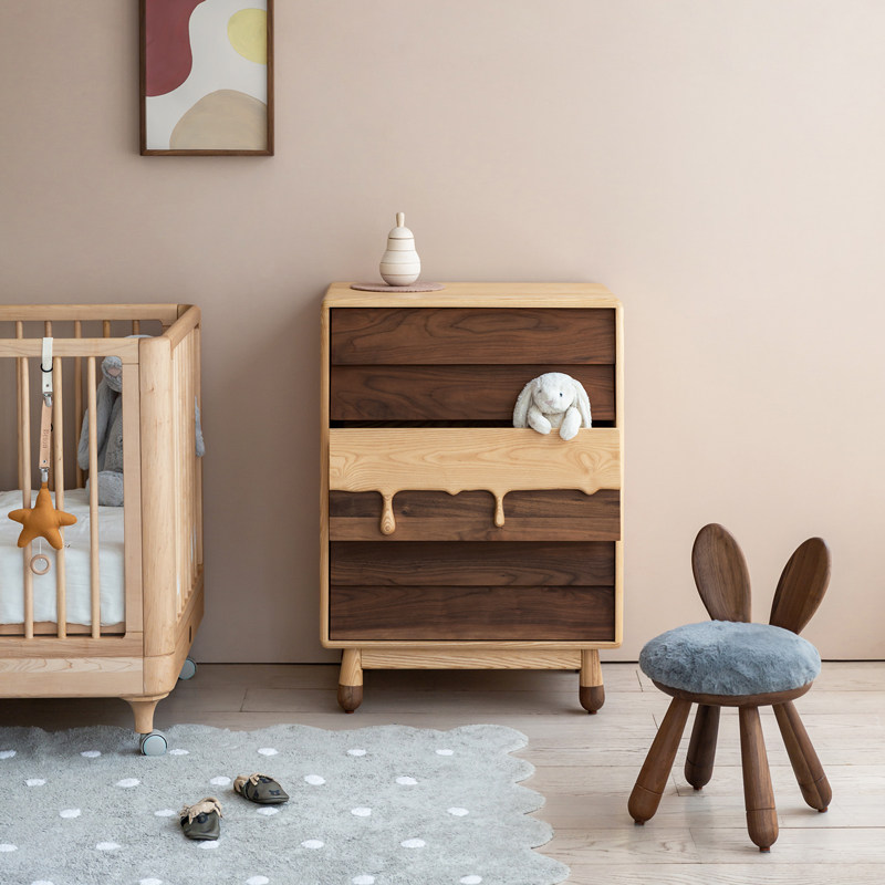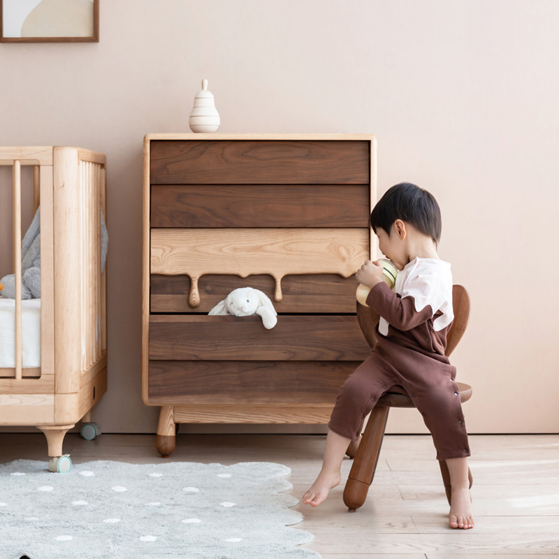 Upper shape children's milk bucket cabinet Ash black walnut four-bucket cabinet Children's clothing storage cabinet Solid wood locker