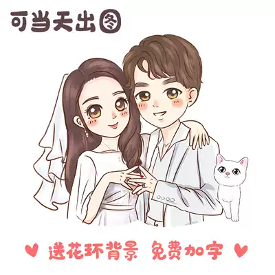 Hand-painted avatar design cartoon manga Q version animation set to make logo live photo couple wedding invitation