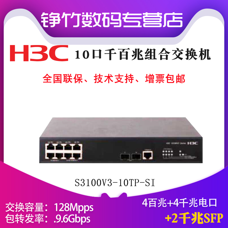 H3C China 3 S3100V3-10TP-SI Enterprise 8 mouth network management switch 1100 trillion photoelectric combination exchanger 400 trillion electrical outlet 4000 trillion electrical outlet 2SFP one thousand trillion