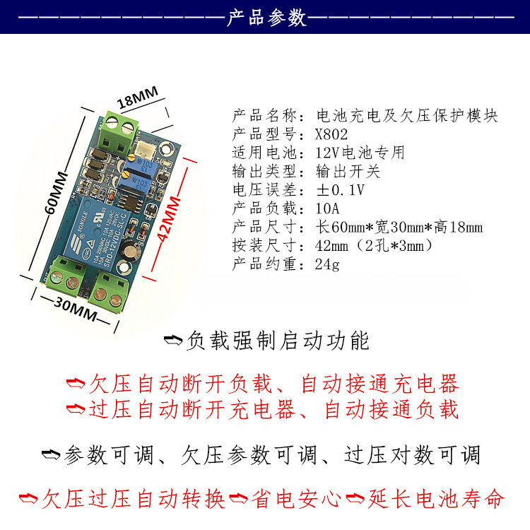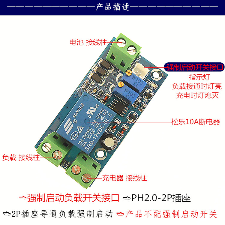 12V battery anti-Undervoltage overdischarge control module lithium battery battery automatic charging recovery load Protection Board