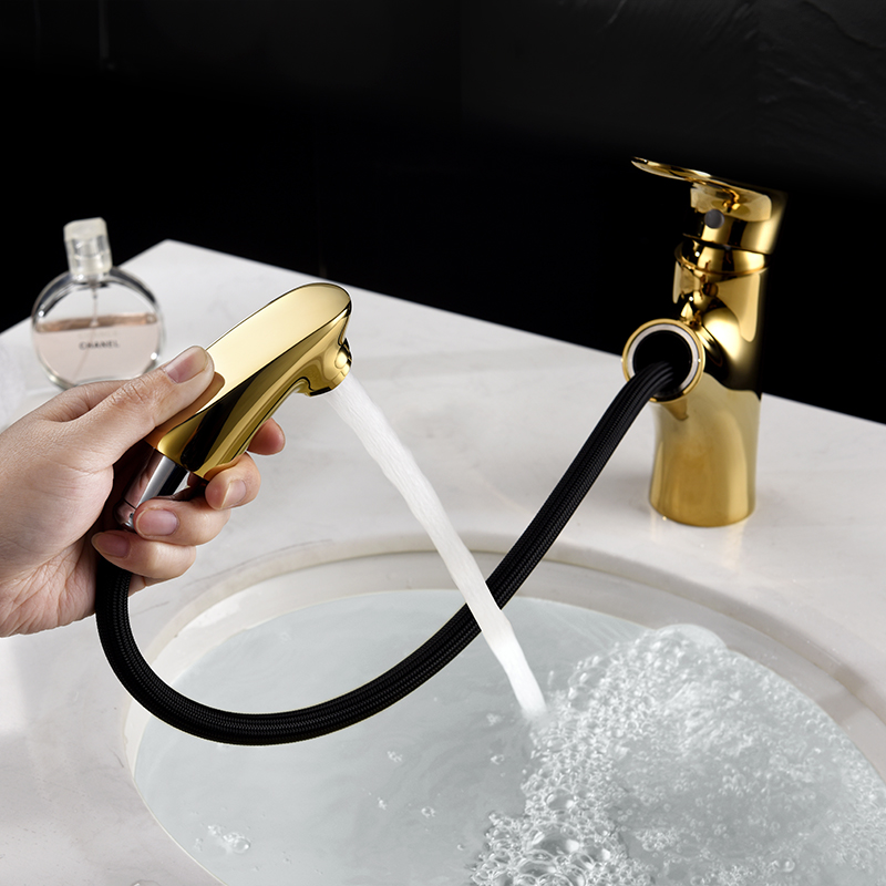 Surface basin pull-out tap full copper gold hot and cold Terra basin washbasin Retractable Washbasin Faucet Home