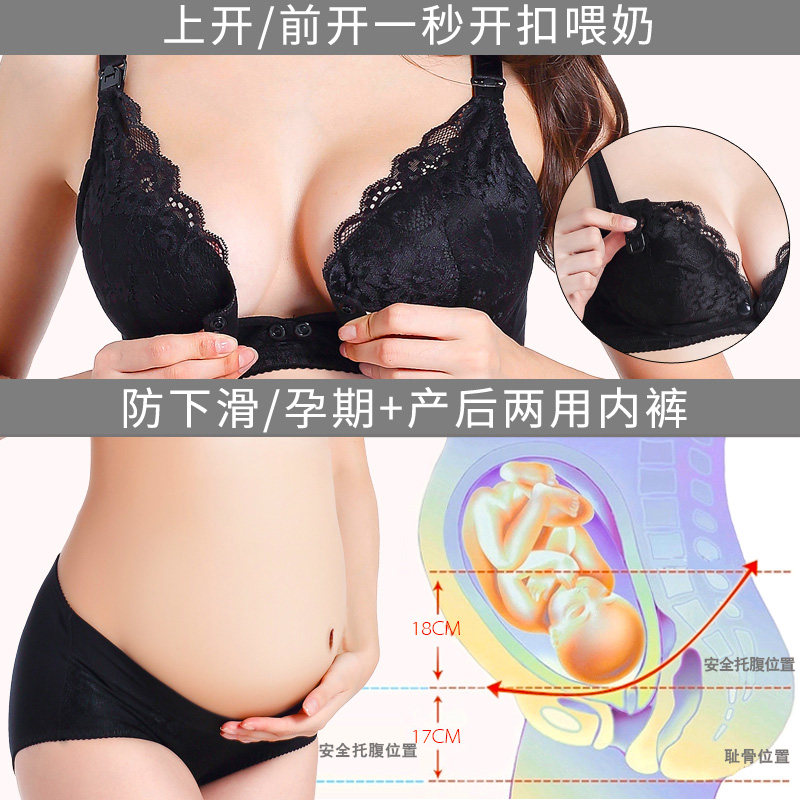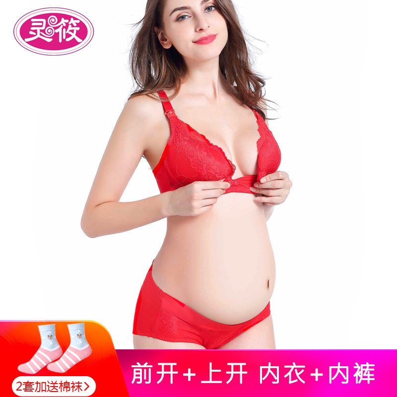 Pregnant women's underwear suit before open red pregnancy lace sexy underwear bra without steel ring feeding and breastfeeding suit