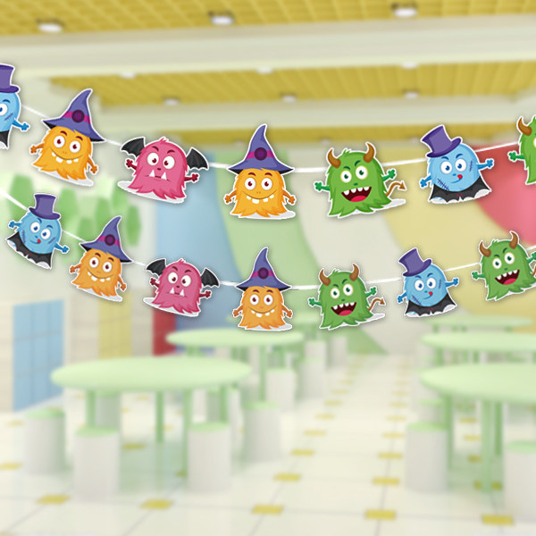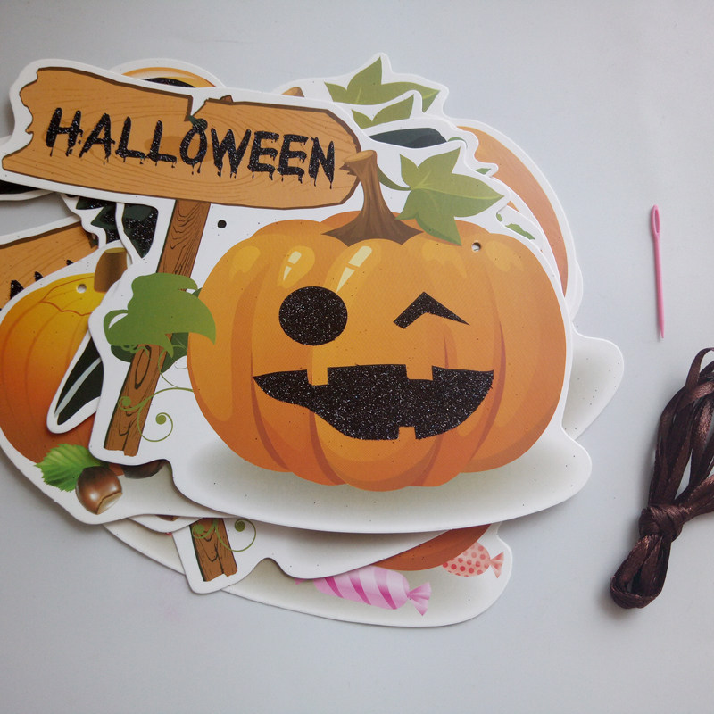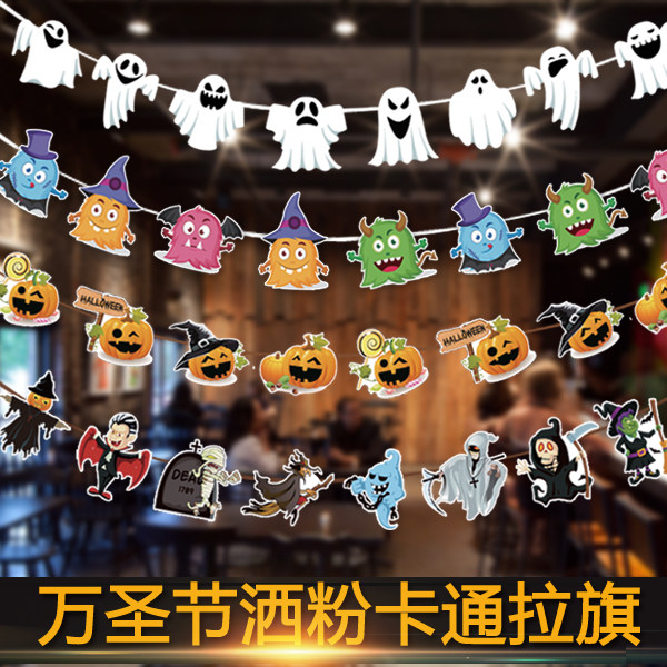 Halloween Scene arrangements Decorations Pull Flags Sprinkle Pink Strings Flags And Flags Pull Flowers Props DIY