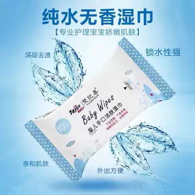 Van Ji Xi baby hand mouth wet wipes small bag skin cleansing soft wipes children portable packaging infants 10 packs 100 draw
