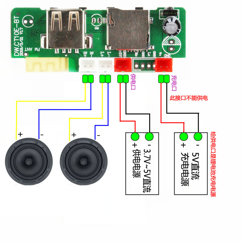 3 7-5V power supply MP3 with power amplifier Bluetooth stereo distortion-free decoding board Pluggable U disk TF card white panel