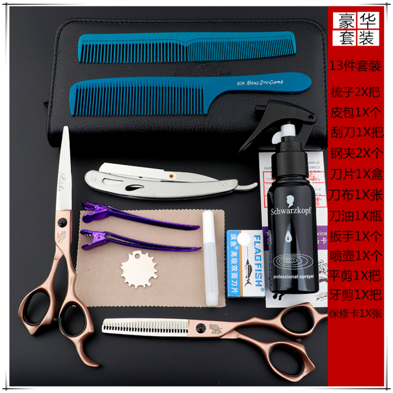 (6 bright flat shears) (6 bright tooth scissors 25% to the amount) (6 rose gold flat scissors) (6 rose gold tooth scissors 25% to the amount) (6 black flat scissors) (Black tooth scissors 25% removal) (6