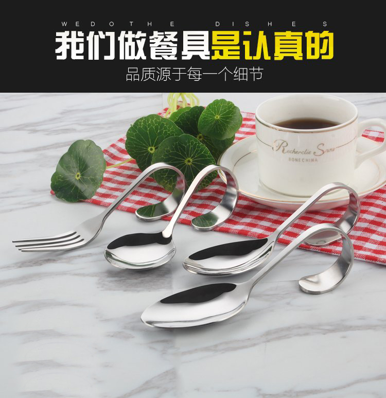 Creative Stainless Steel Spoon Soup Spoon Hung Cup Spoon Shrimp Slide Spoon Soup Spoon Curved Handle Tip Spoon With Round Spoon Buffet Scoop