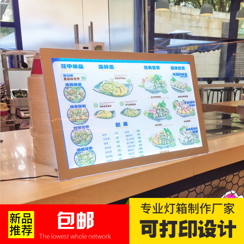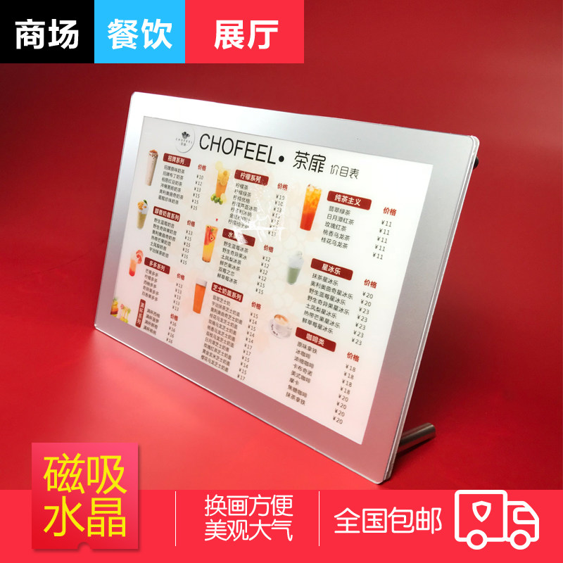 Led ultra-thin magnetic suction crystal spot Vegetable Milk Tea Shop Bar TABLE PRICE LIST ORDERING Dining Card PVC Plate Billboard Light Box