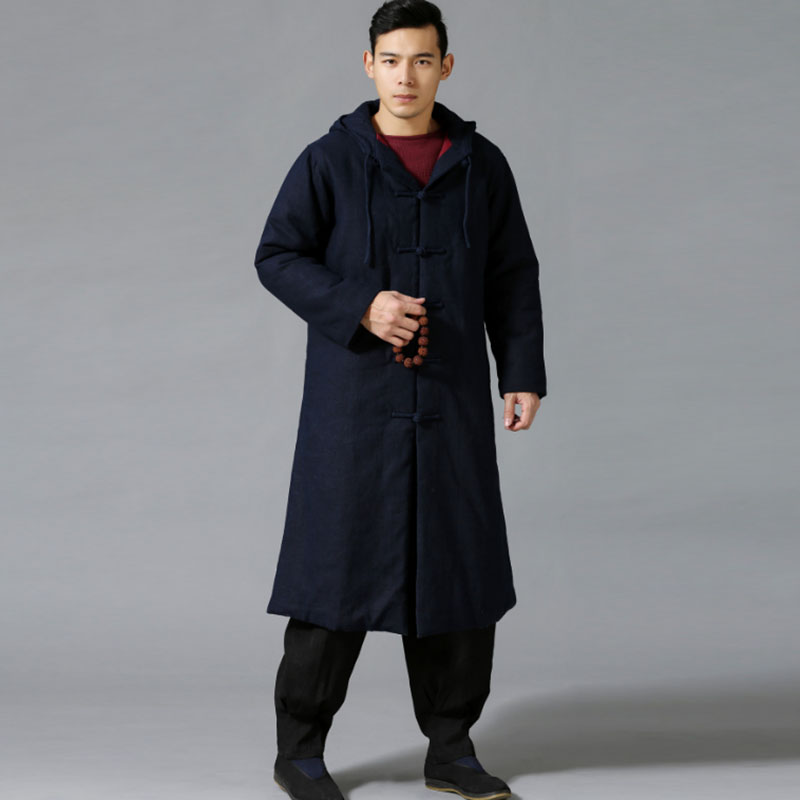 Chinese national wind cotton clothes male winter thickened Chinese medium long version over kneecap buttoned tangy cotton clothes with clot coat jacket
