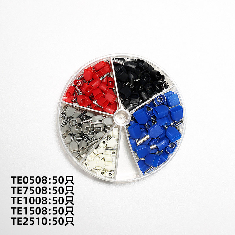 TE double-wire tube combination set needle-shaped cold-pressed parallel wiring terminal tube-shaped double-pin wiring nose