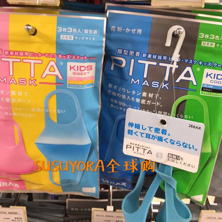 Spot Japan purchases Japanese pitta children's masks 3 colors 3 pieces, boys and girls made in Japan