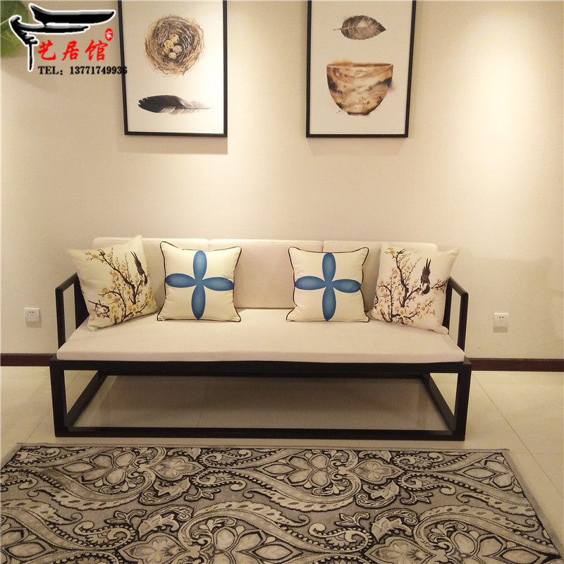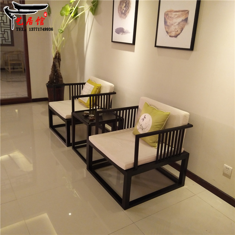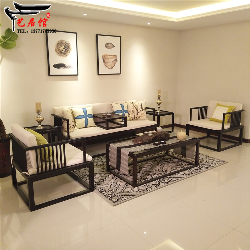 New Chinese style minimalist sofa living room solid wood furniture model room sofa sale building model room Zen furniture combination