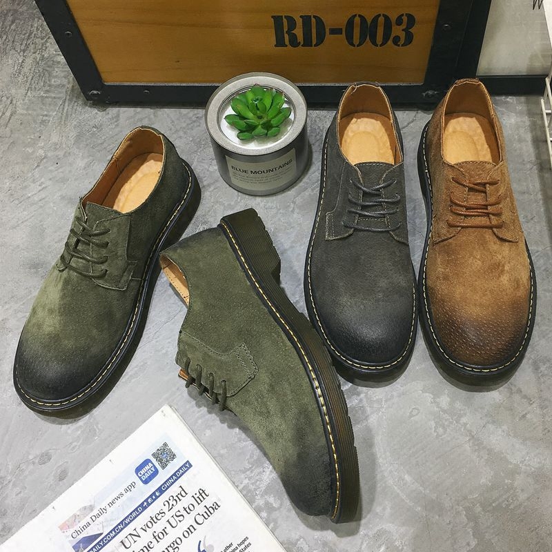 Trendy men's spring tooling boots fashion rubbing old breathable shoes casual desert leather shoes Brock British men's leather shoes