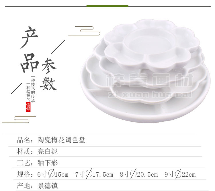 Thickened ceramic palette plum blossom large painting plate Chinese painting gouache student beginner watercolor art paint plate
