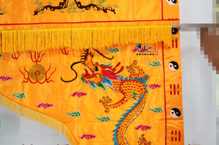 Donghai supplies 2 meters of songhan double dragon ear - tape mantle of the door curtain of the mantle of the flag - curtain of natural embroidery