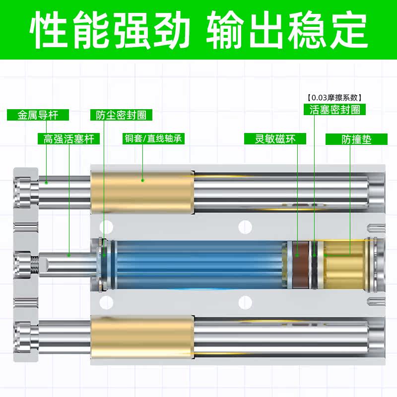 Three-bar triaxial small pneumatic cylinder with guide rod mgpm12 16 20 25-10 25-10 * 20 * 100 * 200