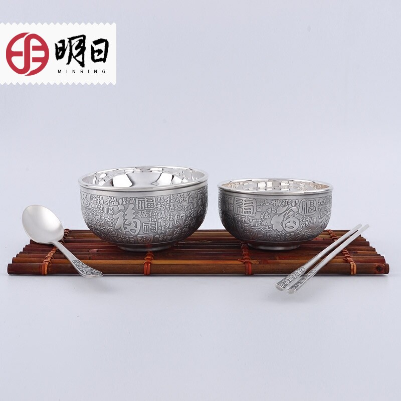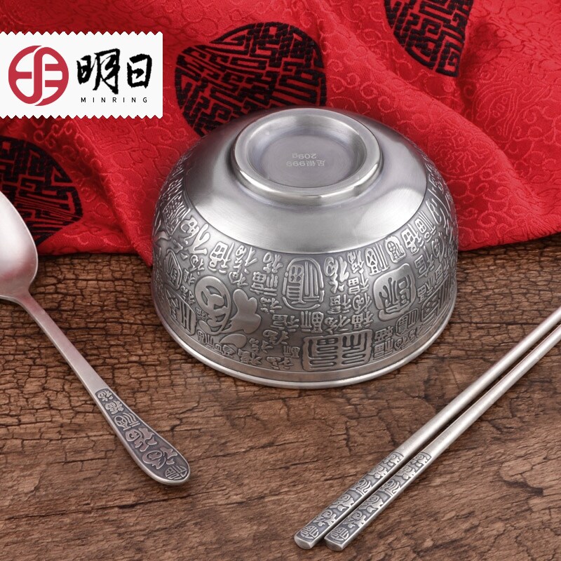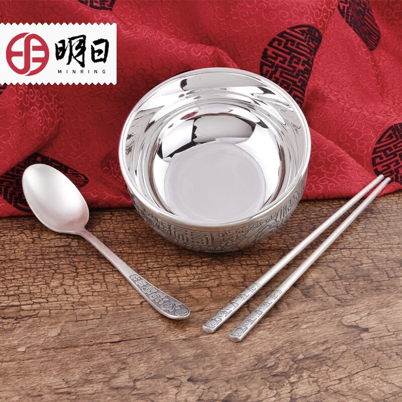 Silver white large bowl single silver white large bowl spoon chopsticks three-piece set silver white small bowl spoon chopsticks three-piece set old small bowl spoon two-piece set silver white small bowl single old