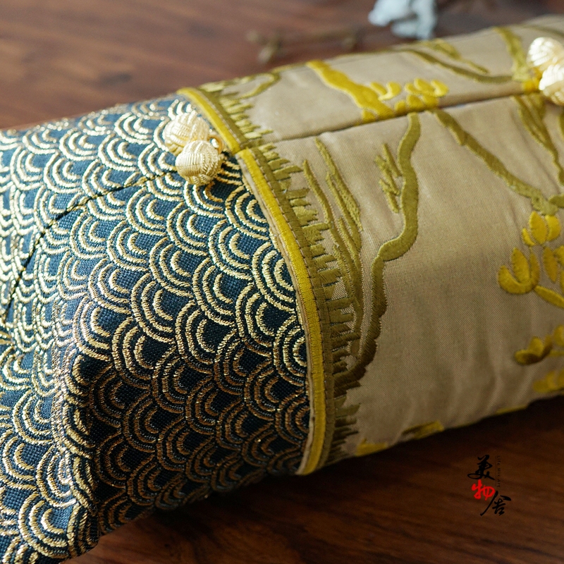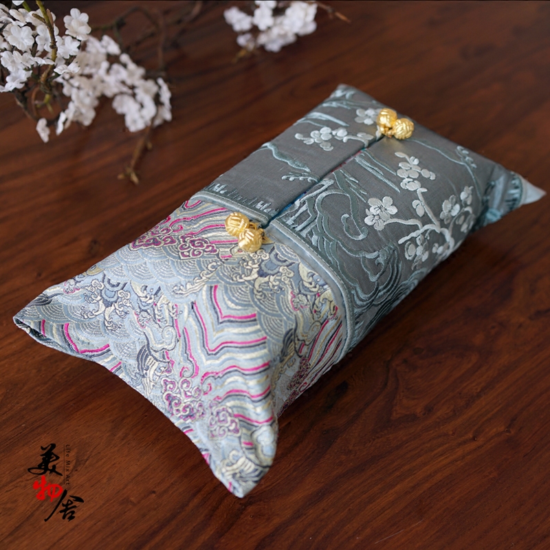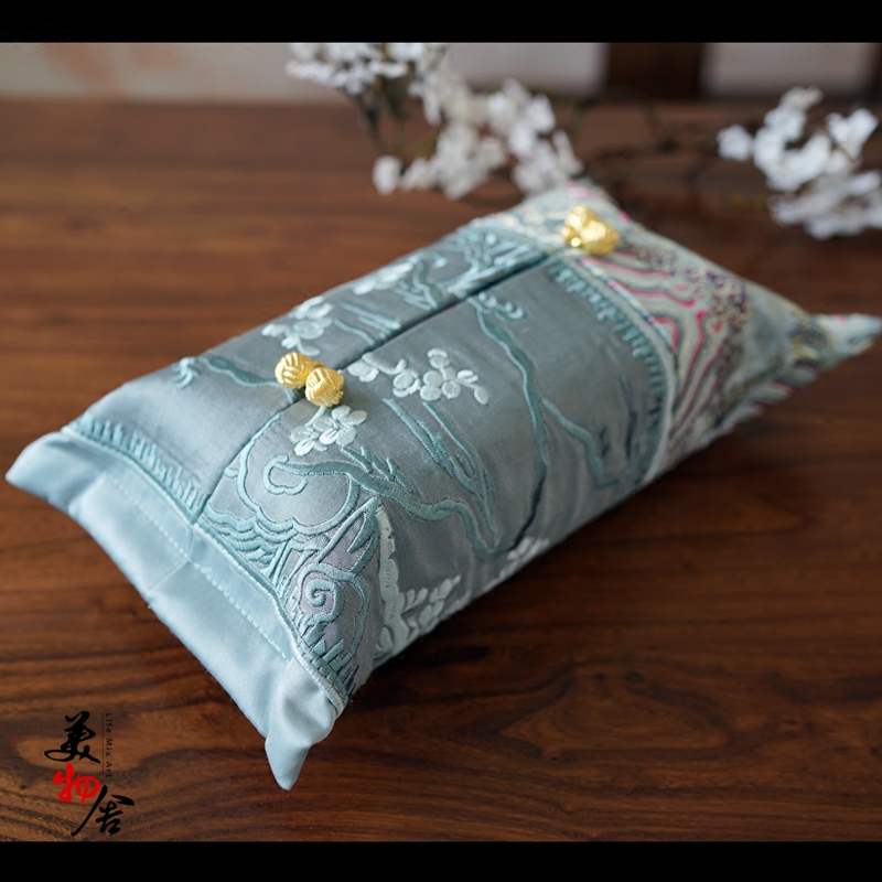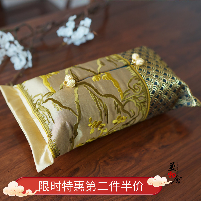 Golden landscape embroidery toilet paper box sleeve Chinese embroidered paper towel box cover car cloth art paper towel cover 3
