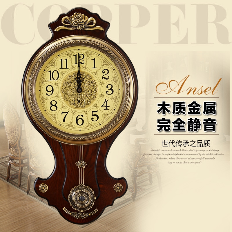 American retro fashion watches and clocks hung in living-room silent hanging table European-style home woody quartz clock clock creative big
