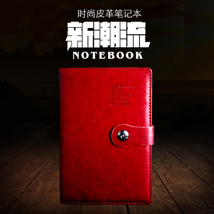 A5 B5 black wine red leather business notebook office belt buckle notepad retro printable LOGO box