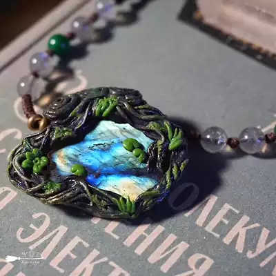 New original design Hand-woven rope clay Magic forest Crystal jewelry Necklace Pendant Spiritual labradorite