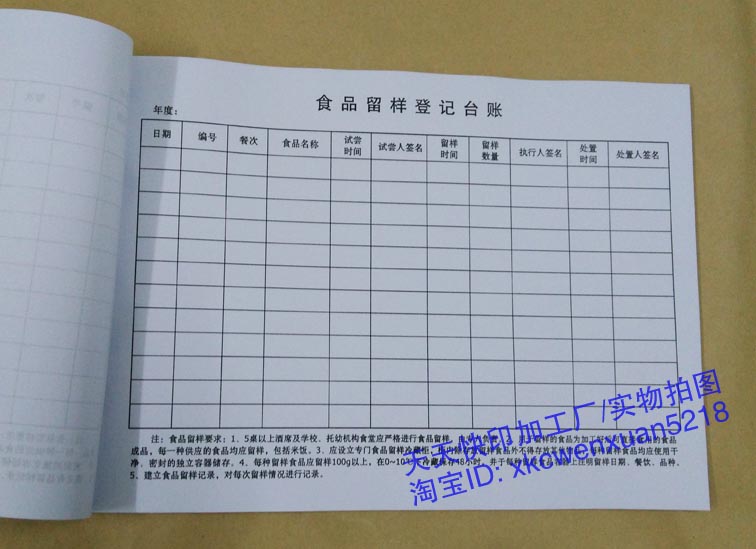 Food sample registration ledger Food sample record book Catering utensils disinfection food purchase record book