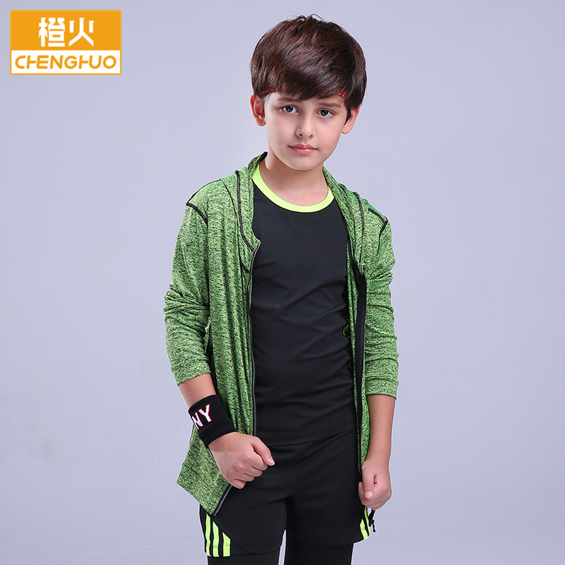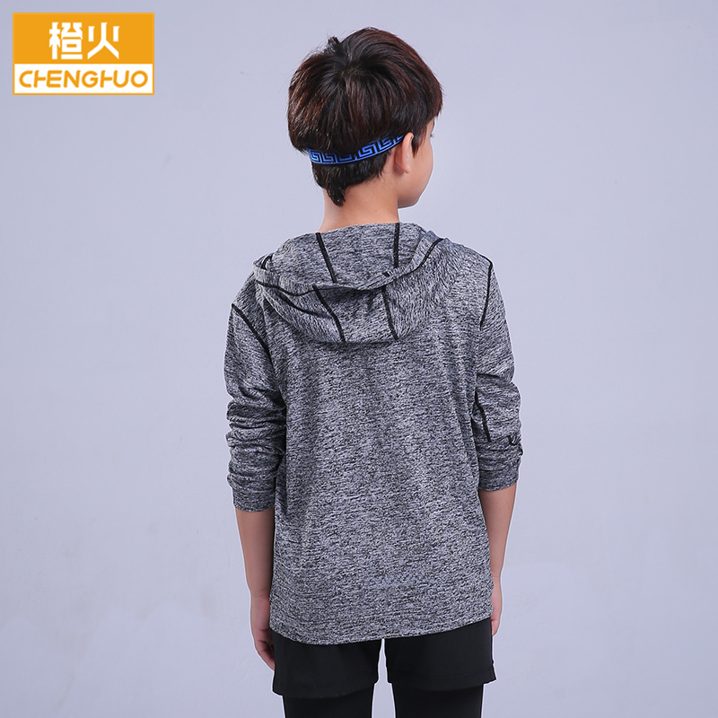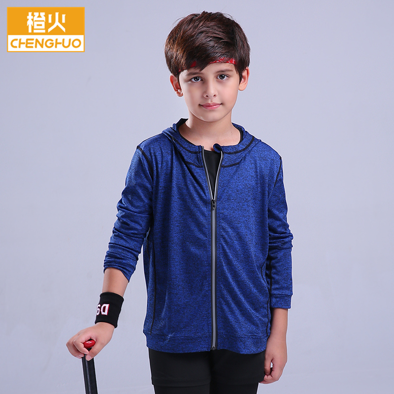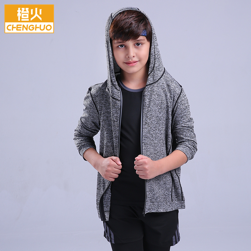 Boys quick-drying jacket spring and autumn middle and large children zipper hooded sports running playing cardigan outdoor fitness outer top