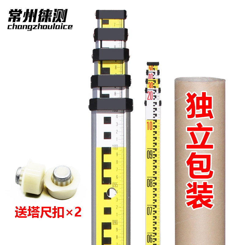 Thickened 5 meters level tower ruler Double-sided scale ruler measurement benchmark Aluminum alloy telescopic ruler round arc Huasheng
